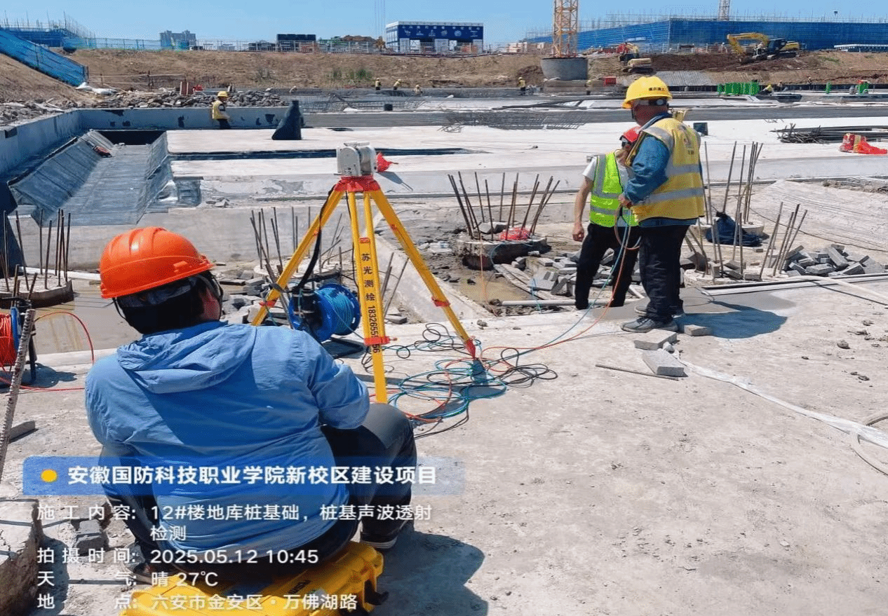 图为2025年5月12日,专业人员对12号楼桩基进行声波透射检测。