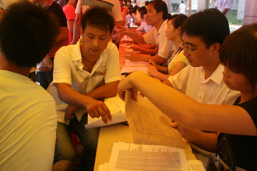 9月5日,天气晴朗,阳光明媚,校园内花团锦簇,彩旗飘扬,人头攒动,热闹非凡,今天是我院2009级新生报到的第一天。