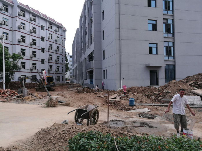 休息好才能革命好!仅从时间上讲,宿舍是大学生最重要的休息场所之一。为了进一步改善同学们的住宿条件,学校提前谋划,统筹安排,于2017年暑假,对原有学生宿舍从地面到墙壁、从水房到洗手间、从床柜到风扇、从内部网线到外围道路等等,全面进行了升级改造。上图是正在改造的3号学生公寓。