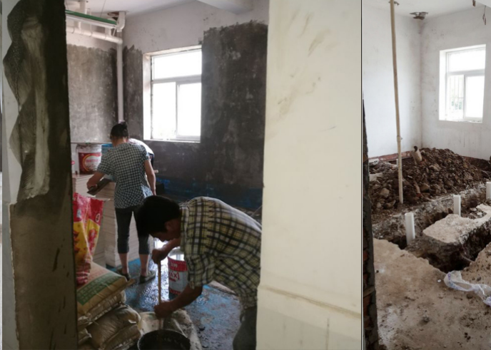 人生若“惮烦”,大半光阴便是虚度。为了广大师生的方便和不烦,后勤人秉着“不惮烦”的理念,想方设法改,努力改到你不烦。上右图是正在改造的卫生间,左图是正在做防水。
