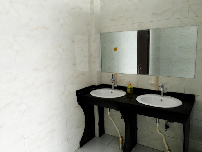 人们常说,细节决定成败!对,洗手间这个细节就很重要!想想改造时的麻烦,感受一下使用时的方便,可以颁个“厕所革命奖”!上图为行政楼改造后的洗手间一角。