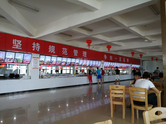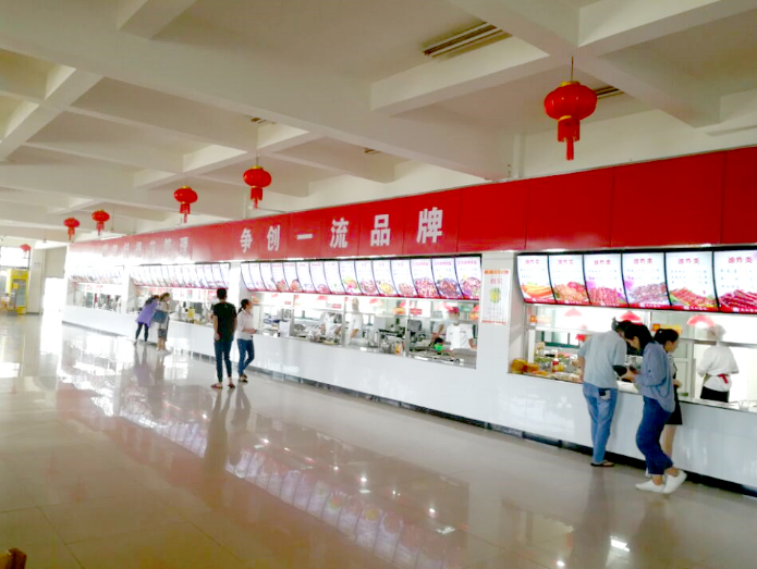 大红灯笼高高挂,美味佳肴盘盘香!在这就餐,每天都给你过大年的感觉!在学校十三五“一高一优”目标的感召下,全面争创一流,已经成为学校各系统的剑指目标!整个后勤系统同样铆足干劲,誓不短板,始终怀揣一盘棋,准确自身定位,真诚服务教学,自信亮出“争创一流品牌”的膳食服务标准。上图为装饰一新的二楼就餐大厅。