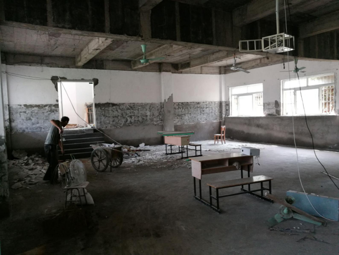 上图为堆满建材正在进行改造的1号教学楼教室。