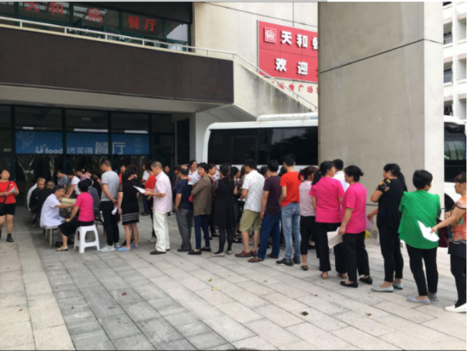 健康是食堂工作人员获得上岗证的必备条件。上图是学校食堂工作人员每年一度的健康检查。