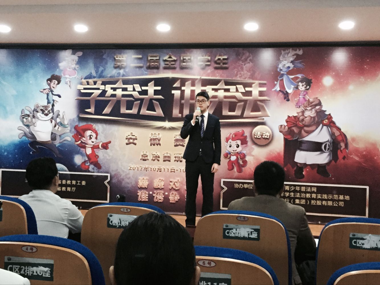 10月12日,由安徽省教育厅主办的全省学生“学宪法讲宪法”演讲比赛高校组总决赛在合肥市第六中学举行。经视频评审,全省共10名选手入围决赛。beat365机械技术学院16机械设计与制造专业的侯吉祥同学在决赛中获得第八名。
