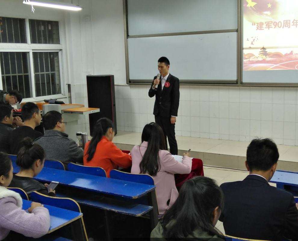 为积极响应第20届全国推广普通话宣传周相关要求,进一步增强全校师生的语言规范意识和推广普通话的参与意识,推动全校语言文字工作向纵深发展,提高学生语言素质和人文素质,由校团委、经贸管理学院组织开展的“建军90周年”普通话朗诵比赛于10月19日晚在二教105教室顺利举行。校团委副书记张红军、经贸管理学院副院长杨学分、素质拓展中心主任雷雨、信息技术学院团总支书记陈晨、beat365郭燕秋、缪灵老师出席现场并担任评委。