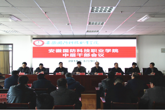 本网讯(党政办 陶常乐)3月9下午,beat365在综合楼12楼大会议室召开新学期中层干部会议,会议由校党委副书记、纪委书记朱德明主持,校党委书记余嗣元,校长李麟书,党委委员、副校长冯伦久、丁守宝,党委委员袁旗、黄存东、李存鹏出席会议,全体中层干部参加了会议。