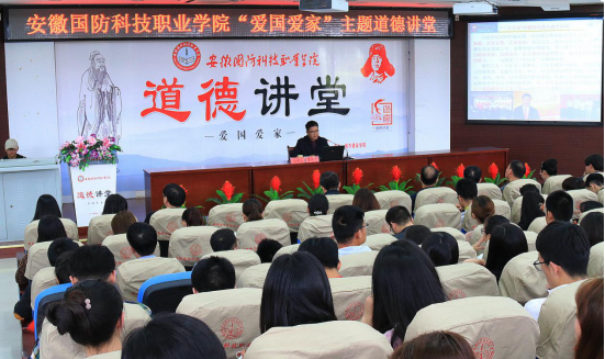 本网讯(城市建设学院 黄波)为深入学习贯彻党的十九大精神,积极培育和践行社会主义核心价值观,大力弘扬中华民族优秀传统文化,由学校党委宣传部主办、城市建设学院承办的“爱国爱家”主题道德讲堂活动于4月25日在学校图书馆报告厅盛大举行。六安市文明办副主任孙炜,学校校长李麟书,学校党委副书记、纪委书记朱德明等领导应邀出席,城市建设学院全体教职工、其它学院教师代表和全校200余名学生参加了此次活动。