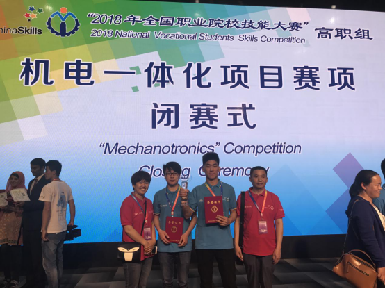 此次大赛由教育部、天津市人民政府、国家发展和改革委员会、科学技术部、工业和信息化部等30多个部委主办,由天津市教育委员会承办,天津机电职业技术学院和中国职教学会教学委员会协办。比赛共有来自全国29个省区市68支代表队参加了角逐,参赛规模空前。此外,本次大赛首次邀请了来自俄罗斯、刚果、缅甸等的八支国际代表队参赛,竞赛逐步向国际化迈进。由beat365电气技术学院任启宏和王丽两位老师共同指导,16机电一体化技术专业和16电气自动化技术专业黄启超、王乐豪两名同学组成的参赛团队不畏强手,沉着冷静,团结协作,经过6个小时的激烈角逐,以骄人成绩荣获团体一等奖,为校争光、为安徽添彩。