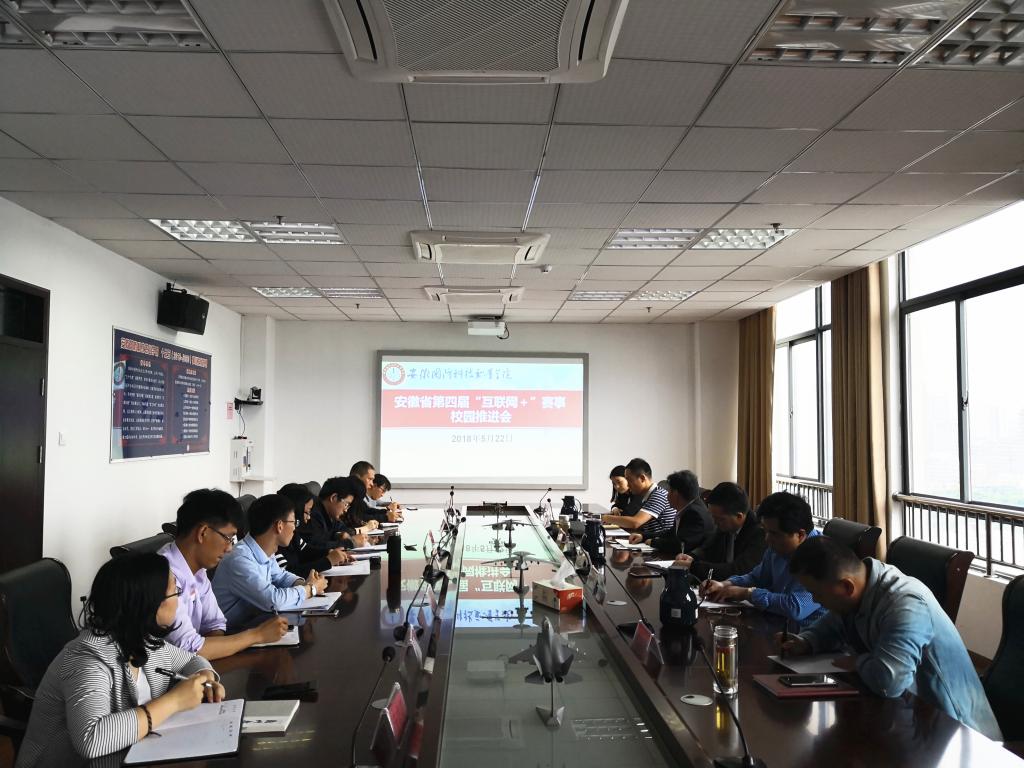 本网讯 5月22日上午,由校团委组织开展的安徽省第四届“互联网+”大学生创新创业大赛校园选拔赛推进会在综合楼11楼会议室顺利举行。校党委委员、副校长丁守宝,教务处处长王志宏,学校督导员赵守林,学生处副处长张志鸿,团委副书记张红军、信息技术学院党总支副书记杨庆颖出席会议,各学院团总支书记、全体创新创业课教师参会。