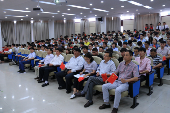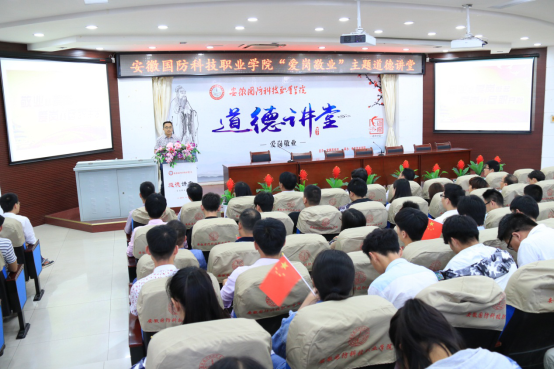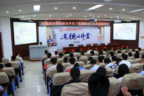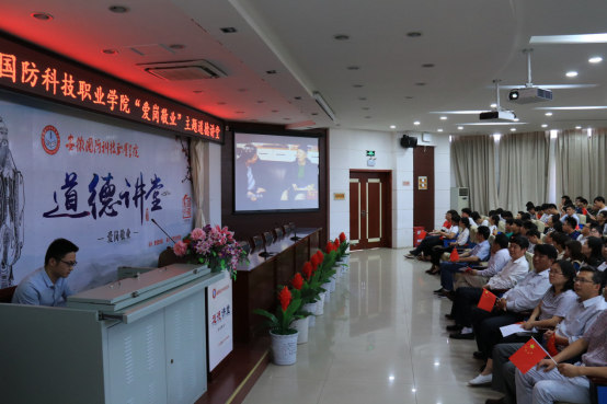 本网讯(电气技术学院 陈俊)为进一步培育和践行社会主义核心价值观,弘扬中华传统美德,加强学生思想道德建设,5月23日下午,以“爱岗敬业”为主题的道德讲堂活动在校图书馆报告厅隆重举行。本次道德讲堂活动由校党委宣传部主办,电气技术学院承办。校党委书记余嗣元,校党委副书记、纪委书记朱德明,学校副校长丁守宝等领导应邀出席,电气技术学院全体教职工,其它学院教师代表和全校200余名学生参加了此次活动。
