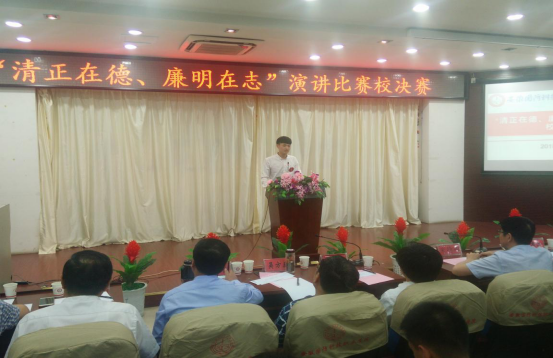 本网讯(纪委办 曹建春)为深入推进廉洁文化进校园活动,加强大学生廉洁教育,帮助大学生扣好人生第一粒扣子,5月30日下午,由校纪委主办、校团委承办的“清正在德、廉明在志”主题演讲比赛校级决赛在图书馆报告厅成功举行,来自六个二级学院的十位选手参加了决赛,校纪委委员及各二级学院党总支书记出席了演讲比赛并担任评委,现场共有150多名观众观看了比赛。