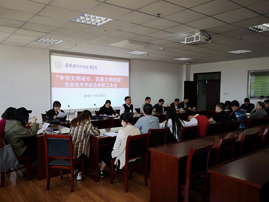 会议召开前后,学校各部门各单位高度重视,广泛动员,立即部署,利用宣传栏、橱窗、宣传画、电子屏、学校网站等载体,通过召开部门员工会议、班级主题班会等形式,在师生群体中大力宣传文明城市、文明校园“双创”工作,并积极采取措施,分工协作,营造美丽整洁的校园环境。