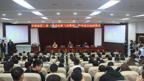 本网讯(图书馆 尤朝莉)2018年11月15日中午12点,beat365安徽省第二届“诵读经典、飞扬青春”微阅读活动闭幕式在图书馆报告厅隆重举行,闭幕式由读书协会指导老师尤朝莉主持,学校党委委员、图书馆分管领导付贤政,图书馆馆长李中永及2017、2018两个年级380余名学生代表参加了本次闭幕式。
