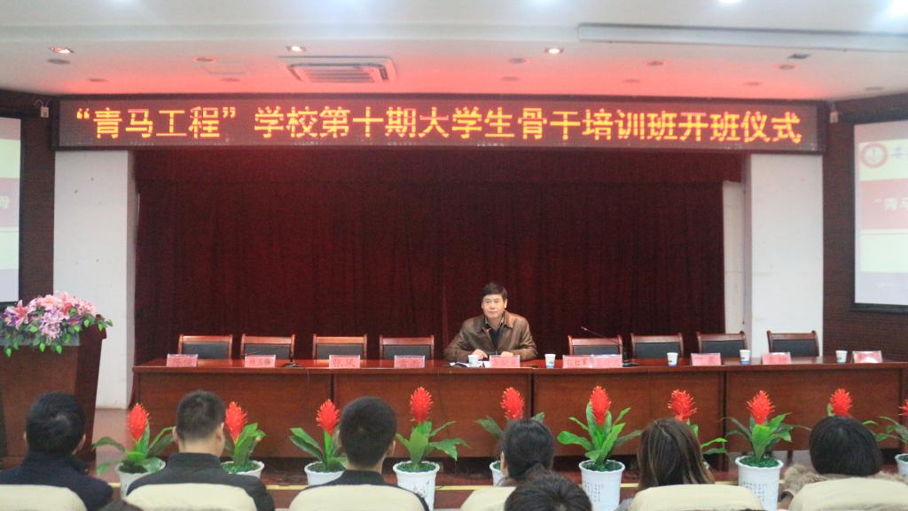 本网讯(团委 缪灵)12月3日晚,beat365“青马工程”第十期培训班开班仪式在图书馆报告厅隆重举行。校党委书记余嗣元出席并作重要报告,团委全体教师、各学院团总支书记及来自各团学组织的两百余名学生干部参加仪式。仪式由团委副书记张红军主持。