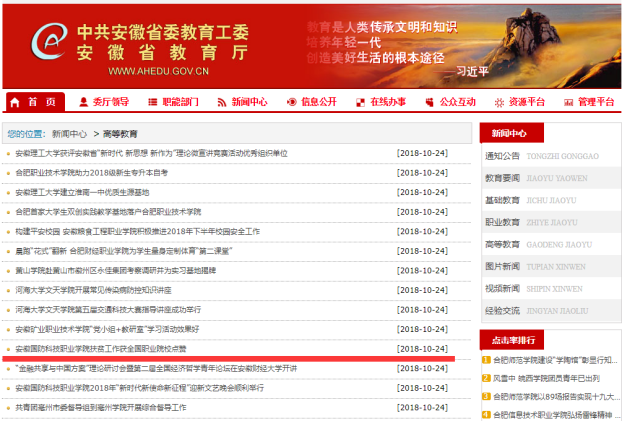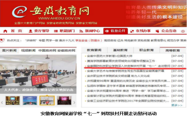 安徽教育网在网站主页先后报道学校扶贫工作新闻10余篇