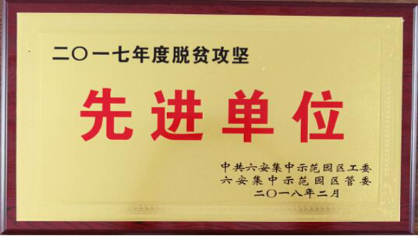 六安市集中示范园区“脱贫攻坚先进单位”光荣称号