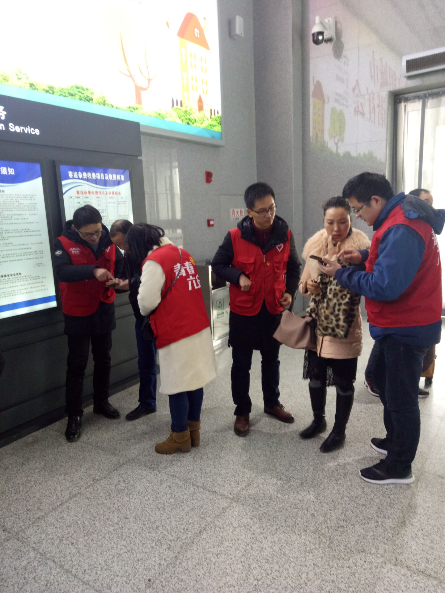 活动当天,志愿者们在火车站站前广场、售票厅、入站口出站口等地开展志愿服务活动,“红马甲”的忙碌身影随处可见。帮助返校学生解决学生证不能刷票的问题,使用自动购票机帮旅客买到了合适的火车票,提行李、指道路、倒热水、站好岗,志愿者们的耐心解答和周到服务帮助旅客们解决了问题,按时搭上火车,举手之劳拉近了距离,爱心问候融化了春寒。
