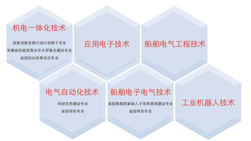 电气技术学院:开设电气自动化技术等6个专业,拥有一支过硬的师资队伍,现有工业机器人综合应用、机电一体化综合应用、自动线安装与调试技术等23个校内实验实训室,设备资产总值约为1600余万元。校企合作建立了30多家校外生产型实训基地。近年来获A类赛项特等奖2项、一等奖5项、二等奖3项、三等奖2项,B类赛项一等奖20余项、二等奖30余项、三等奖40余项。