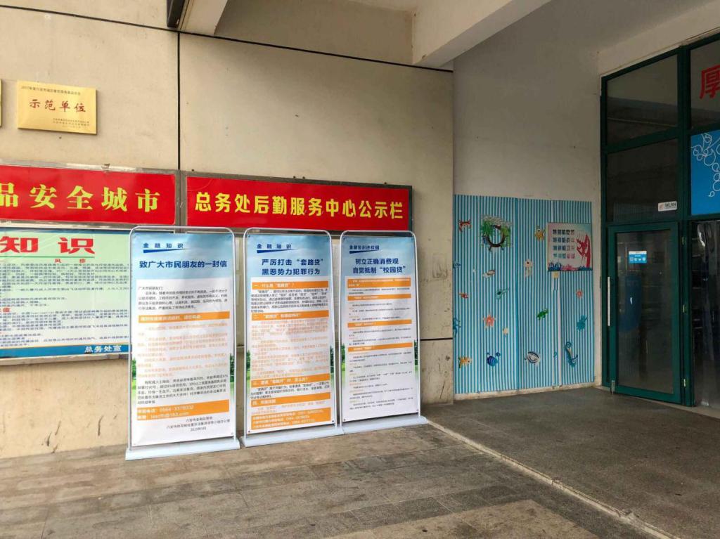 在食堂设置了《致广大市民的一封信》《树立正确消费观,自觉抵制“校园贷”》《严厉打击“套路贷”黑恶势力犯罪行为》等宣传专栏