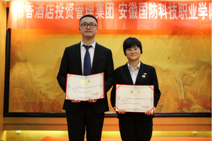 beat365旅游管理专业14级优秀毕业生孙纯艳和16级优秀实习生叶晨程被聘为18级学徒师傅。