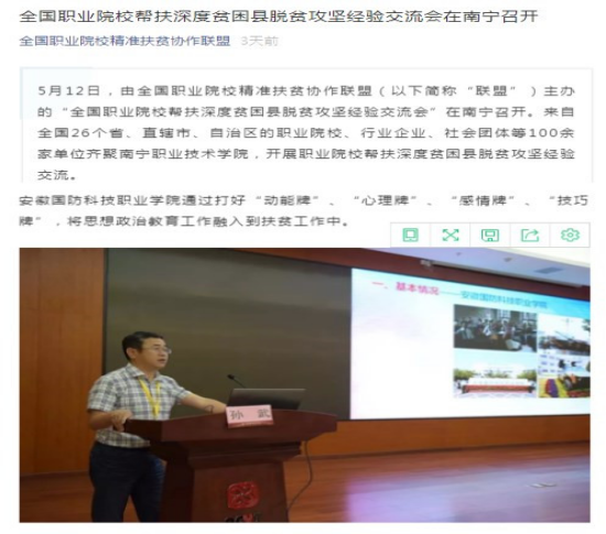 安徽教育网报道学校在全国职业院校脱贫攻坚经验交流会上发言情况