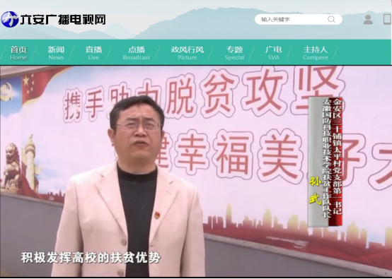 2019年3月27日,六安电视台播放了由六安市委组织部、六安市直工委牵头制作的学校扶贫工作队抓党建带脱贫促攻坚专题,整个专题长达5分钟,详细介绍了学校抓好党建引领、实现精准扶贫情况。(播放链接:http://www.laxf.gov.cn/content/detail/5cb442797f8b9a0e63baed04.html)