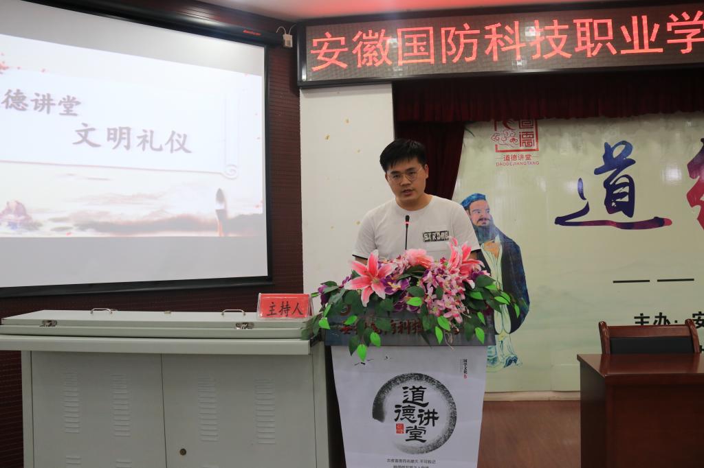 本网讯(信息技术学院 马士君)为弘扬中华传统文化,引导师生知礼尚义、讲礼重仪,自觉成为文明礼仪的传播者、实践者,6月21日下午,由校党委宣传部主办、信息技术学院承办的以“文明礼仪”为主题的道德讲堂活动在校图书馆报告厅隆重举行,活动邀请皖西学院程东峰教授作专题报告。校党委委员、宣传部部长袁旗,校党委委员、信息技术学院院长黄存东等领导出席活动,全校200余名师生代表参加了此次活动。活动由信息技术学院辅导员马士君主持。