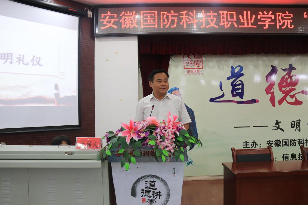 首先,皖西学院程东峰教授为大家上了一堂题为《礼为德之则,循礼以修身》的道德课,程教授用生动风趣的语言、深入浅出的分析,从礼与文明的关系、中国古礼的类别、礼与乐及现代人要重视的五种礼、当代礼仪建设以及高等院校应有的礼仪建设等五个方面对“文明与礼仪”尤其是“礼”进行了深刻的解读,内容丰富而精彩,使在场的师生深受道德与灵魂的洗礼。