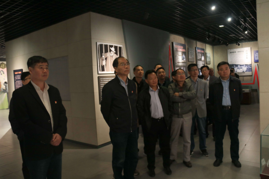 校领导班子在廉政教育展示墙前驻足观看廉政警示案例