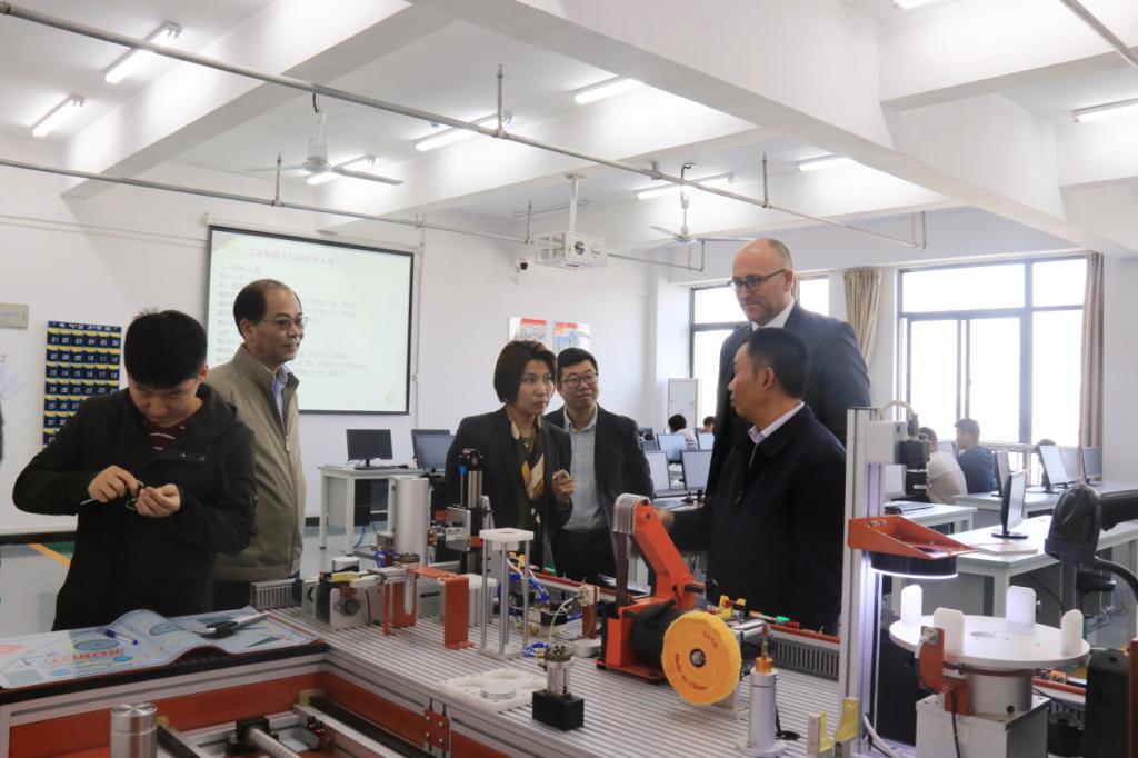 会后,Tim一行在校长李麟书的陪同下参观了beat365电气技术学院、汽车技术学院、机械技术学院部分实训室,Tim校长对beat365过硬的办学实力和优雅的教育教学环境赞叹不已。