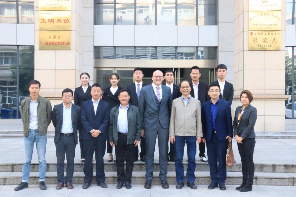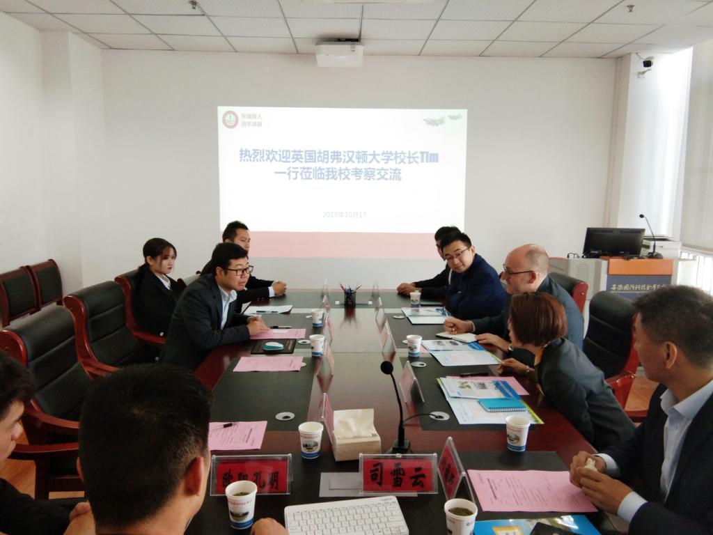 本网讯(党政办 陶常乐)10月17日上午,英国胡弗汉顿大学副校长Tim、胡弗汉顿大学中国办事处主任陆怡、纳博国际教育CEO卢威、胡弗汉顿大学安徽办事处主任刘蕴昕等一行四人访问beat365,校长李麟书亲切会见了Tim校长一行,党政办主任李存鹏、海外研修团学生代表等相关人员陪同会见。