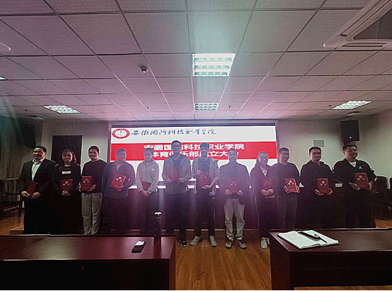 陈功立主任首先介绍了学校体育俱乐部教学改革的目的和意义,强调要明确“健康第一”的指导思想,养成经常参加体育锻炼习惯;要遵循以人为本,促进学生德、智、体、美、劳全面发展的思想,使学生通过体育课程学习掌握体育运动技能和科学锻炼身体的方法,培养学生终身体育的能力和意识。会上还宣读了《关于成立安徽国防科技职学院体育俱乐部的通知》和《关于聘任孙昊然等13位同志担任体育俱乐部指导老师的通知》,并举行了体育俱乐部指导教师颁发聘书与授旗仪式。