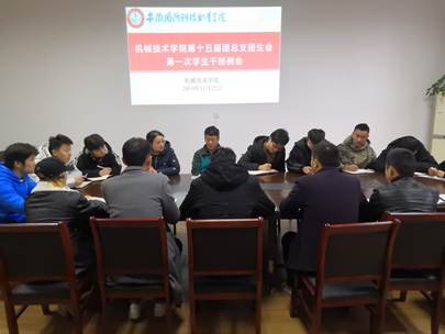 本网讯(机械技术学院 郑文兴)2019年11月27日,机械技术学院团总支学生会在知行楼120会议室召开了第十五届学生会第一次全体干部例会。学院党总支书记张宗江,副书记陈思,团总支郑文兴,以及全体学生会干部出席本次会议。