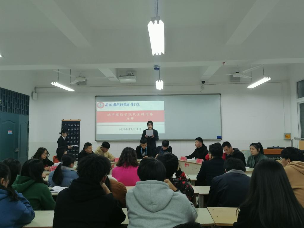 本网讯(城市建设学院 张凤)为提升思辨能力和创造力,开阔学生的视野,以辩会友,进一步推进“一院一品——筑金大舞台”主题活动的开展,2019年12月11日晚,城市建设学院在二教410举办第三届筑金辩论赛决赛。