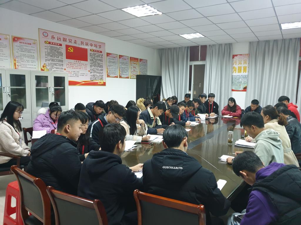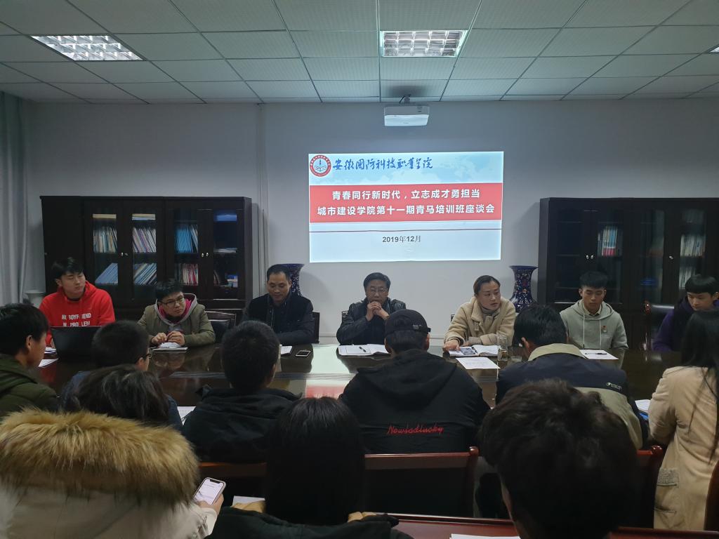 本网讯(城市建设学院 罗丞筠)为进一步了解学员参加“青马工程”培训班以来的收获与感触,让学员们在交流中加深对培训的认识,同时加强学生干部队伍建设,城市建设学院于12月17日晚在行政楼319召开了“青马工程”学员座谈会。城市建设学院党总支副书记叶启衡、校团委副书记张红军、辅导员罗丞筠、学院参训31名学员参加了本次座谈会。座谈会由学院团总支书记张凤主持。