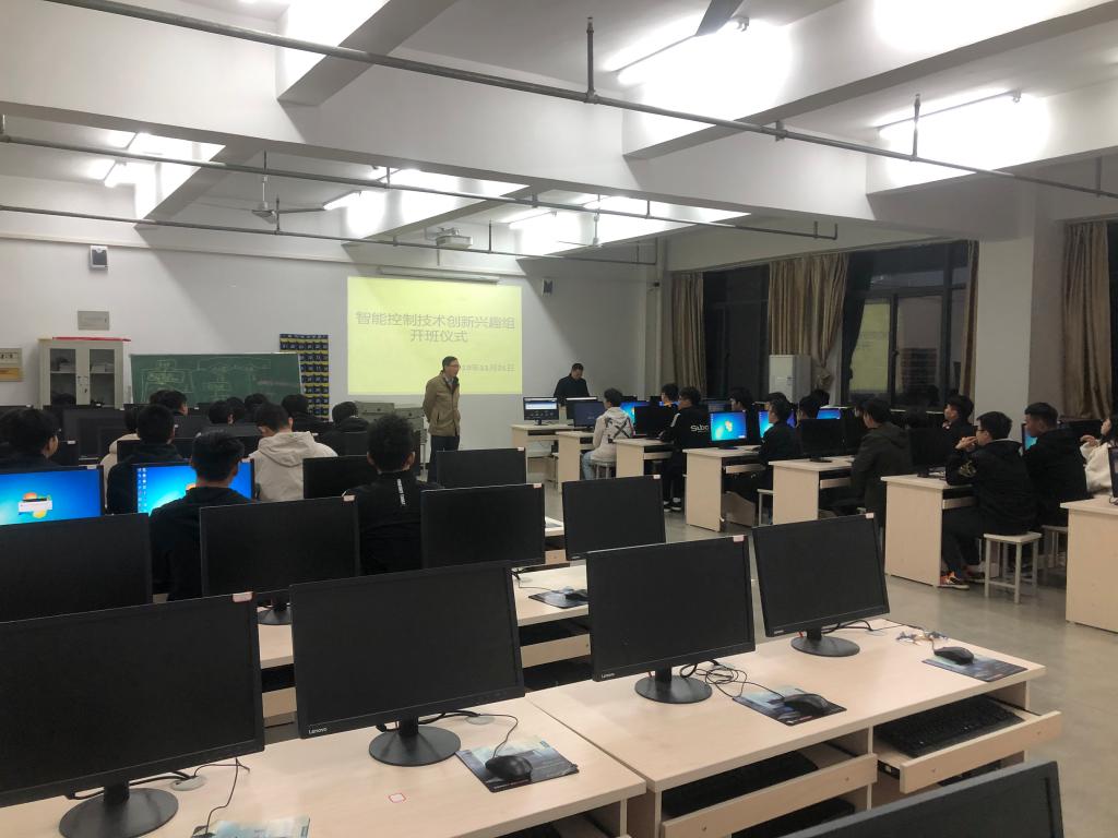 双选原则,有序分组。2019年11月21日在综合楼602举行智能控制技术创新兴趣组开班仪式,本次智能控制技术创新兴趣组共设5个项目,机电一体化项目、现代电气控制技术、光伏电子工程技术、工业机器人技术及应用、制造单元智能化改造与集成技术。