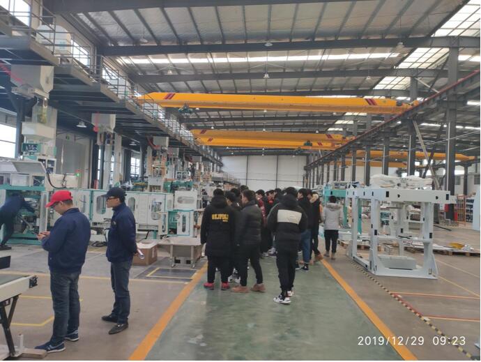 人事部李杨主任接待了师生一行,首先在展览室给学生介绍了企业的发展历程,未来的规划,接着带学生参观生产车间,同学们观看了大米分装过程。最后带学生到会议室,详细讲解了学生在企业的培养过程,并列举实例17机器人班陈猛飞同学在顶岗实习期间的培养过程。