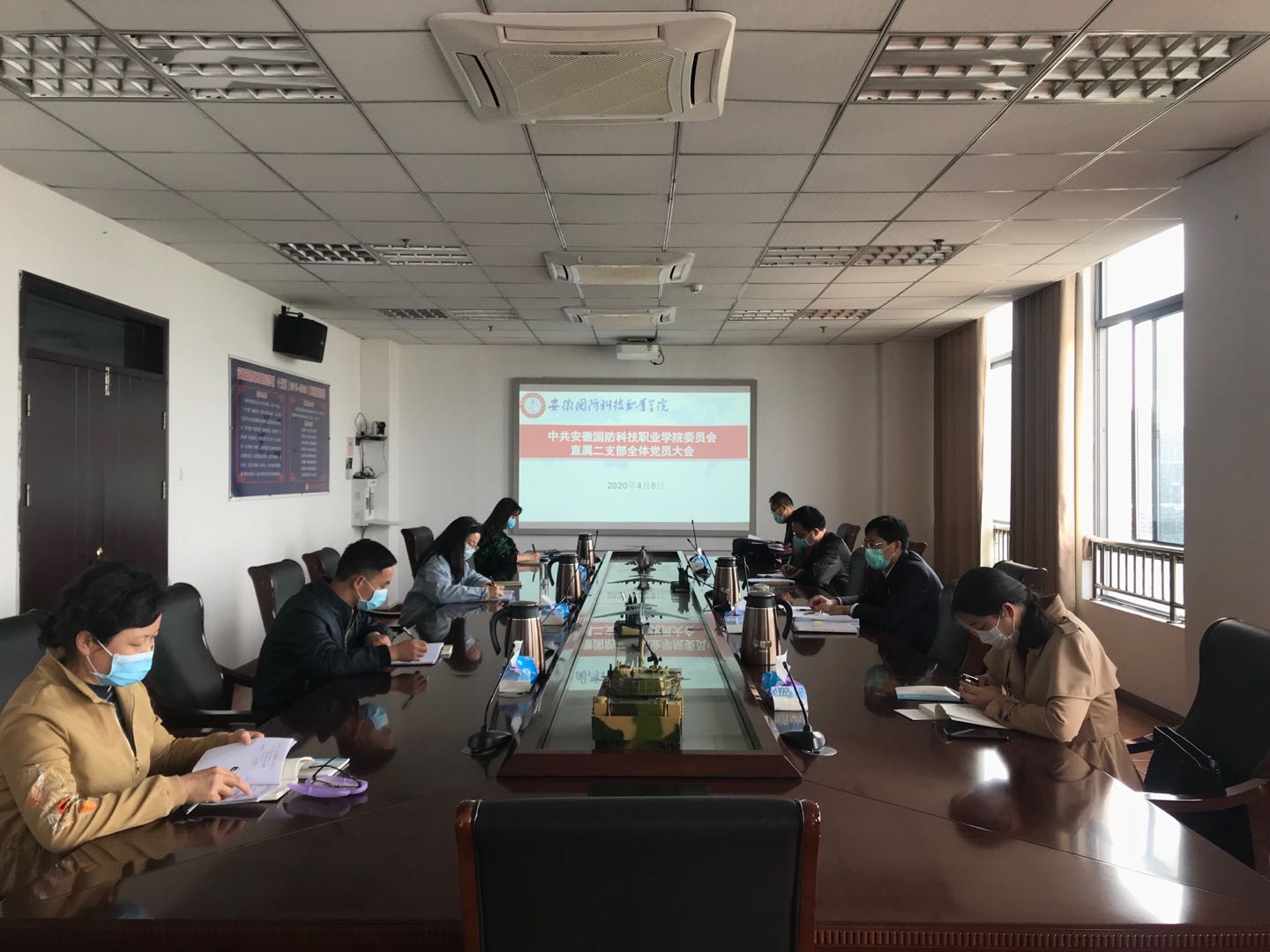 本网讯 为深入学习贯彻习近平新时代中国特色社会主义思想,进一步落实立德树人根本任务,深刻领会中共中央国务院印发的《新时代爱国主义教育实施纲要》等文件精神内涵,4月8日下午,直属二支部在综合楼第一会议室召开全体党员大会,部署安排宣传部、思政部及直属二支部近期工作安排,并开展集中学习和讨论。会议由支部书记袁旗主持,全体党员参加了会议。