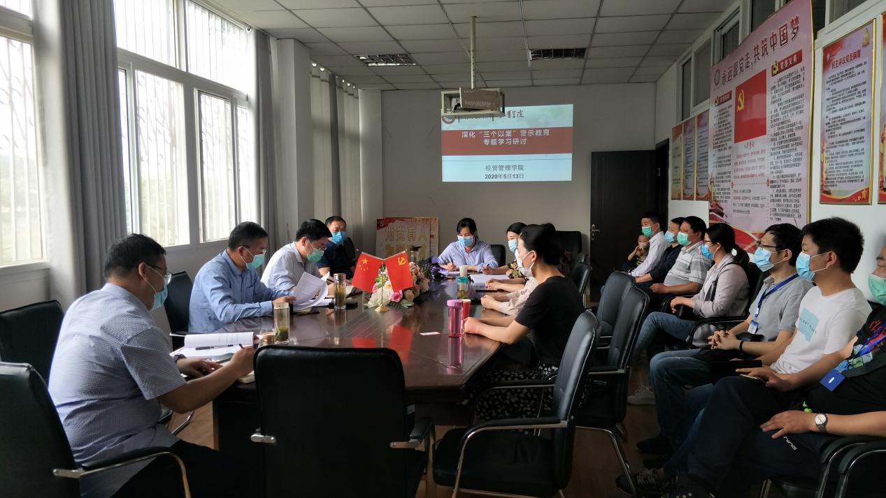 本网讯(经贸管理学院 张圣霞)5月13日下午,经贸管理学院在知行楼204会议室召开深化“三个以案”警示教育学习研讨会。会议由学院党总支书记杜先扬主持,学院全体党员参加了会议。