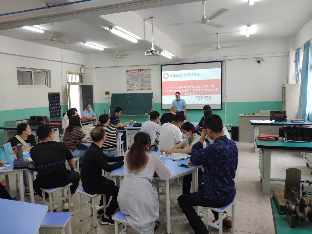 本网讯(汽车技术学院 王龙)社会服务是高校的四大职能之一,一直以来,汽车技术学院积极发挥高校人才资源等优势,为六安地方经济发展培训人才。近期,汽车技术学院为六安市快捷实业集团机动车安全检测有限公司组织开展为期6周的汽车维修工培训,该企业共31名员工参加培训。