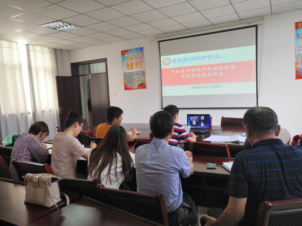 本网讯(汽车技术学院 戴柳)7月4日下午5:00,汽车技术学院汽检支部在知行楼416会议室召开了学生党员发展大会。大会由支部书记姜继文主持,全体党员老师参加了会议。陈德松、朱宏伟、张浩雨3名发展对象通过网络参加了发展大会。
