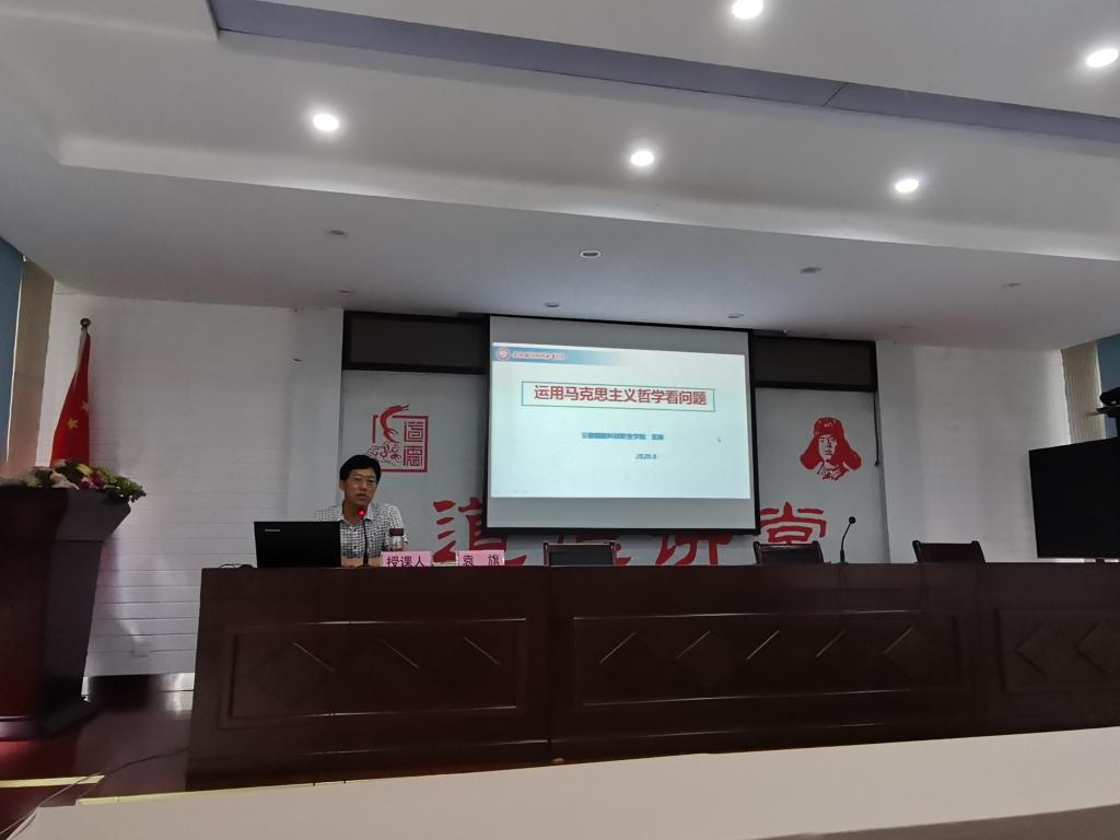 2020年8月1日上午,袁旗老师应六安市税务局金安分局邀请,为金安区税务局税校的青年税务干部作了题为“运用马克思主义哲学看待问题”的专场报告。报告会由该局副局长孙选同志主持。