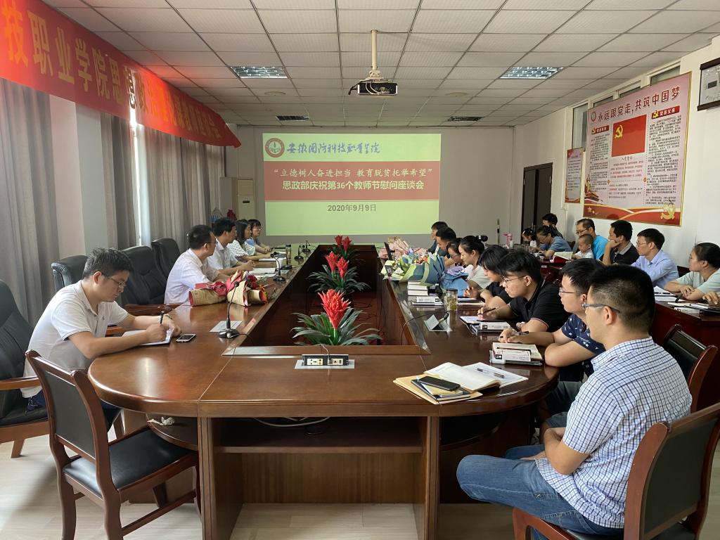 本网讯 春华秋实,桃李沁香,在第36个教师节到来之际,9月9日下午思政教学部召开庆祝第36个教师节慰问座谈会,学习贯彻习近平总书记对广大教师和教育工作者的寄语,向广大教师送上节日祝福和诚挚问候。校党委委员、宣传部长、思政部主任袁旗出席并主持会议。