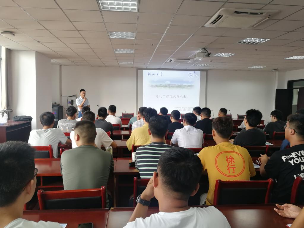 本网讯(电气技术学院 史媛芳)电气技术学院与皖西学院联合培养2020级电气工程及自动化专业本科班开学典礼暨新生入学教育于9月13日下午圆满完成,为加深同学们对电气工程及其自动化专业的了解,激发学习兴趣,电气技术学院计划组织开展电气工程及其自动化专业的专业导论系列讲座活动。13日下午4点,电气学院邀请皖西学院电气与光电工程学院院长张刚教授,为2020级电气工程及自动化专业本科班新生举办了第一场讲座:“电气工程现状与未来”主题讲座。