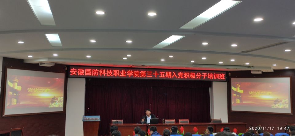 本网讯(电气技术学院 王腾州)为使入党积极分子懂得党的性质、纲领、宗旨、组织原则和纪律,懂得党员的义务和权利,帮助他们端正入党动机,确立为共产主义事业奋斗终身的信念,电气技术学院党总支根据beat365唯一官方网站党委要求,由电气技术学院党总支书记王希江于11月17日在图书馆报告厅主讲“中国共产党的指导思想”,beat365唯一官方网站第三十五期入党积极分子培训班全体入党积极分子参加培训。