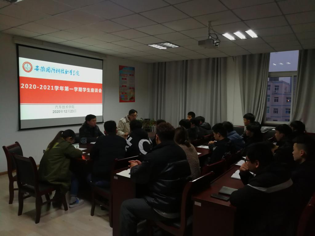 本网讯 为倾听学生心声,了解学生学习生活状况,提高学院办学质量,2020年12月23日下午汽车技术学院在知行楼416会议室召开学生代表座谈会。学院党总支副书记余桂刚老师、学院副院长姜继文老师等参加了本次座谈会。