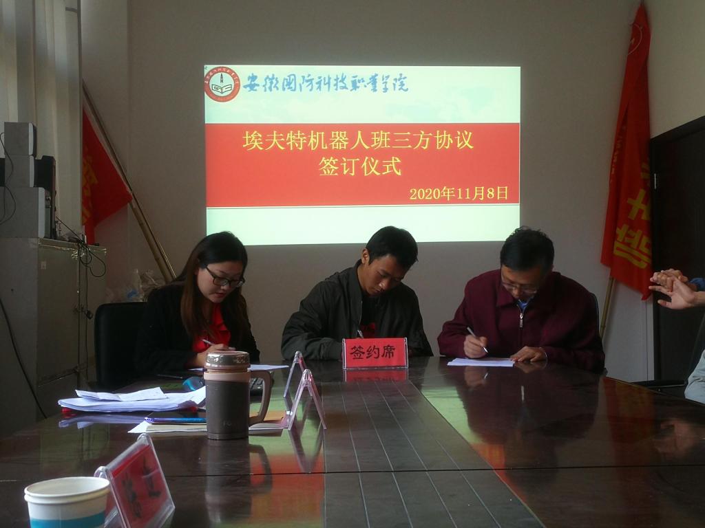 最后,学校、企业、学生三方就校企合作达成协议,共同签订2019级“埃夫特”订单班三方协议。