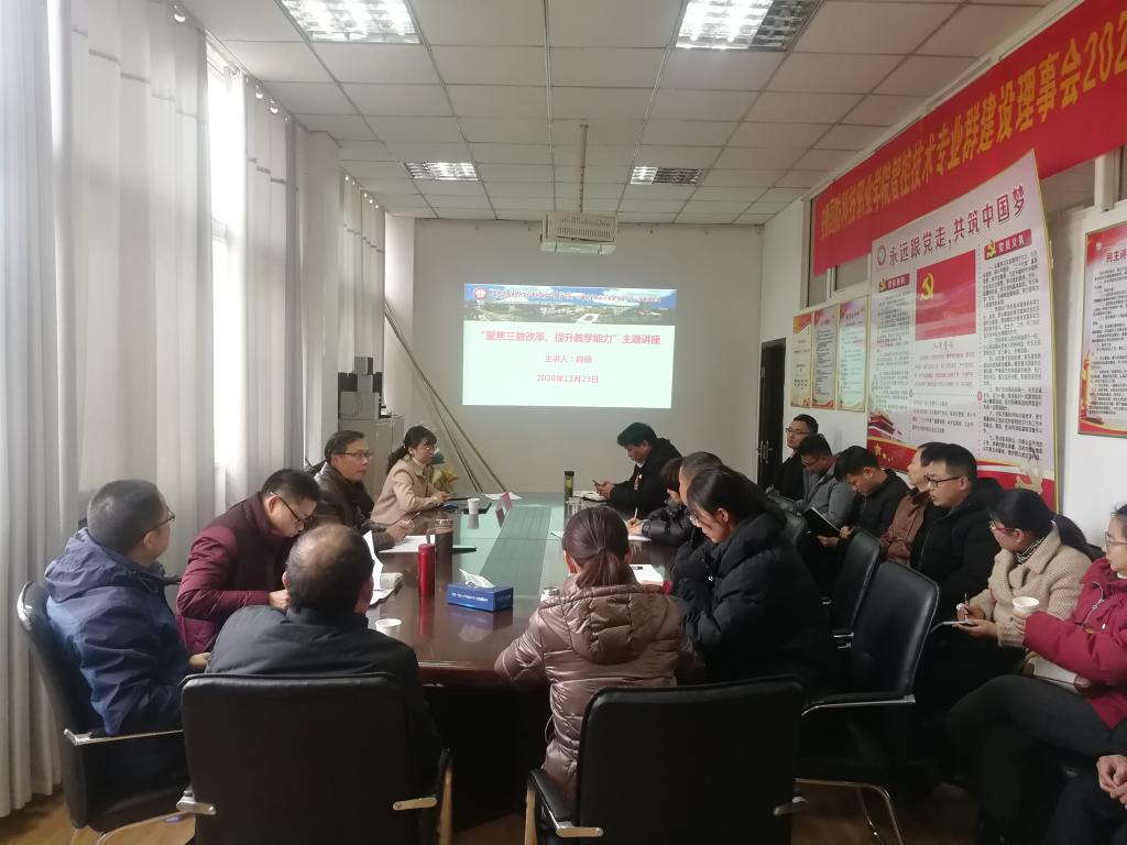 本网讯(电气技术学院 史媛芳)为积极备赛2021年教学能力大赛,12月23日下午,电气技术学院在106会议室举办了“聚焦三教改革,提升教学能力”的主题讲座,讲座邀请了2020年安徽省教学能力大赛一等奖团队成员向楠、芮素文两位老师,由李翔院长主持,全体专业教师参加。