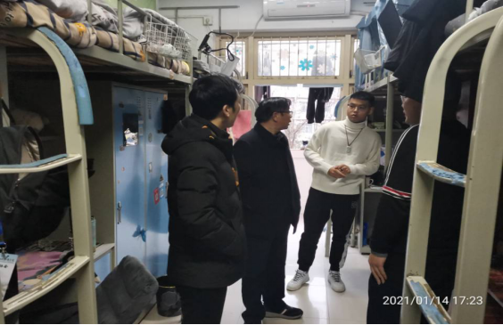 检查的同时也询问了学生们是否购返程买车票,居住地在何地,在疫情防控阶段叮嘱返程途中一定要做好个人防护,去向动态要和班主任报备登记,假期在家不聚集少外出,有情况要及时上报,同时也要制定合理的学习计划,并祝福学生度过一个安全和谐的春节。